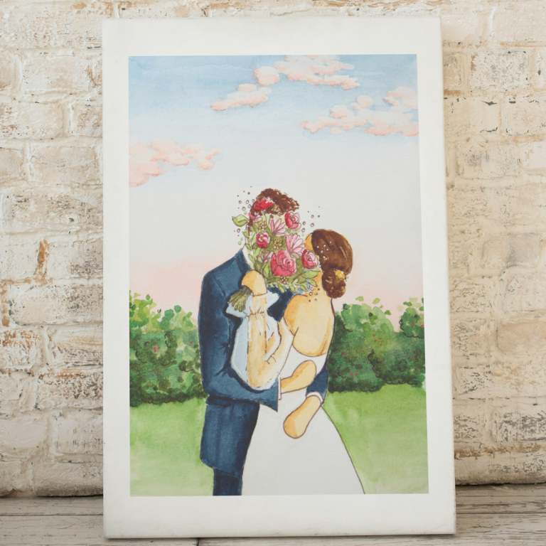 Pendant le mariage, je crée en direct une grande aquarelle représentant un moment clé de votre journée.