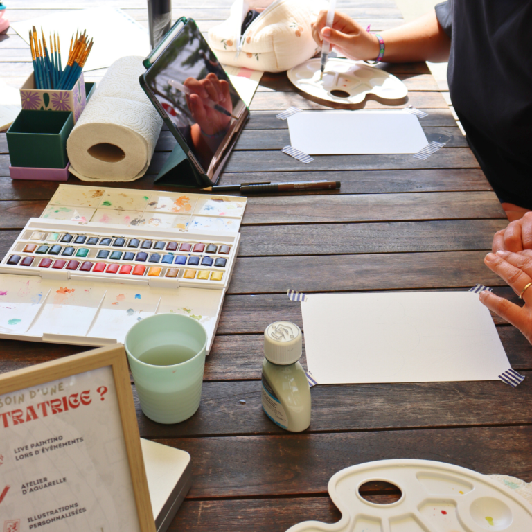 Les ateliers aquarelle sont pensés comme des moments simples et chaleureux,